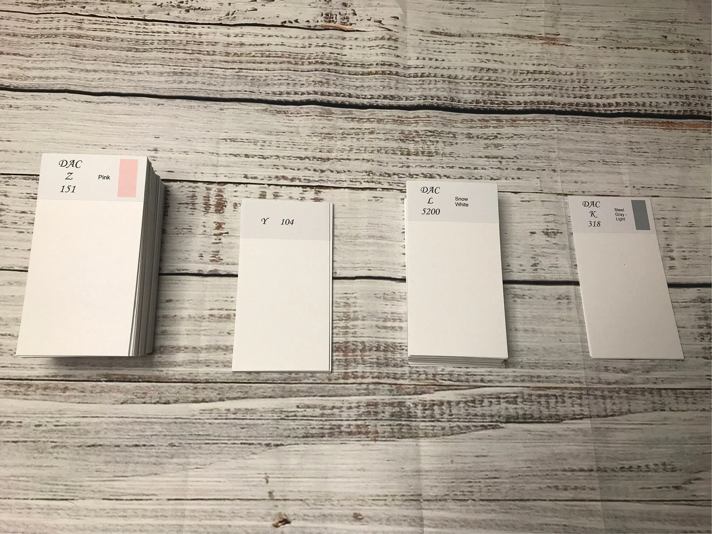 Please note dye lots vary on drills so the colors may not match the swatches 100% these color swatches are for reference. These are printed on a professional commercial printer for the closest accuracy to color. Divider cards are hand-cut and can vary in size and be smaller or larger by a millimeter or so.