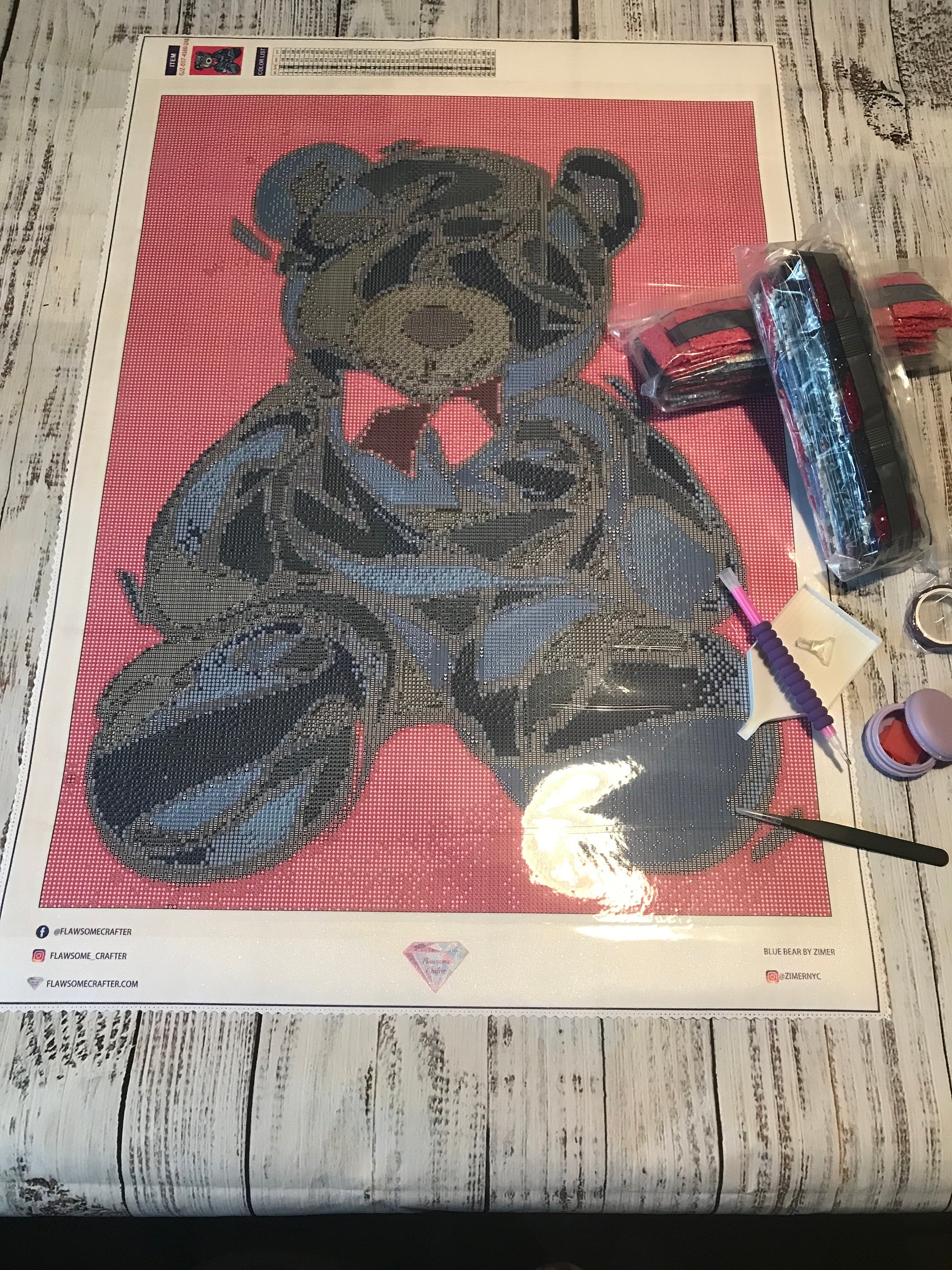Diamond Painting › Diamond painting Blue Bear 45x60 square w/2AB’s Image 1 of 6 Image 2 of 6 Image 3 of 6 Image 4 of 6 Image 5 of 6 Image 6 of 6 Diamond painting Blue Bear 45x60 square w/2AB’s $56.00 Diamond paintingBlue Bear by ZimerInstagram@zimernyc** Please purchase diamond paintings separately from other items as these require different shipping boxes and cannot be combined with other items.**Fully licensed by graffiti/street artist friend.45x60Square drills- High-quality resin drills.- upgraded poured glue to help reduce drill slippage.- luxurious velvet glitter canvas with a scalloped edge.45colors with 2 AB’sDrill tray, washi tape, multi placer, pointed black tweezers, and macaroon holder with waxPacked in a thick tube for easy and safe storage Add To Cart Added! Diamond paintingBlue Bear by ZimerInstagram@zimernyc** Please purchase diamond paintings separately from other items as these require different shipping boxes and cannot be combined with other items.**Fully licensed by graffiti/street artist friend.45x60Square drills- High-quality resin drills.- upgraded poured glue to help reduce drill slippage.- luxurious velvet glitter canvas with a scalloped edge.45colors with 2 AB’sDrill tray, washi tape, multi placer, pointed black tweezers, and macaroon holder with waxPacked in a thick tube for easy and safe storage Reviews Reviewer Name Review Date Star Rating Description Posted on Etsy Product Show More