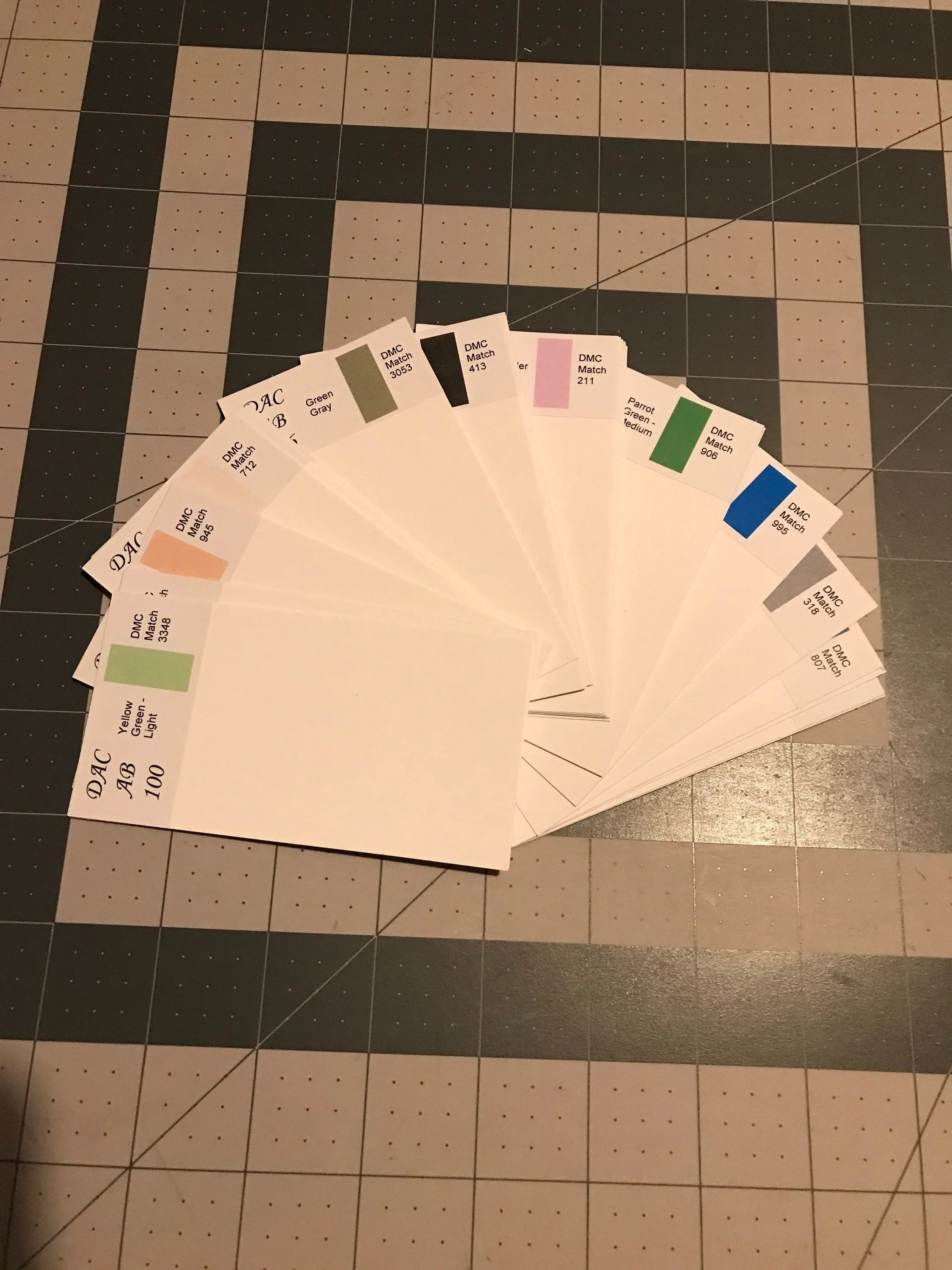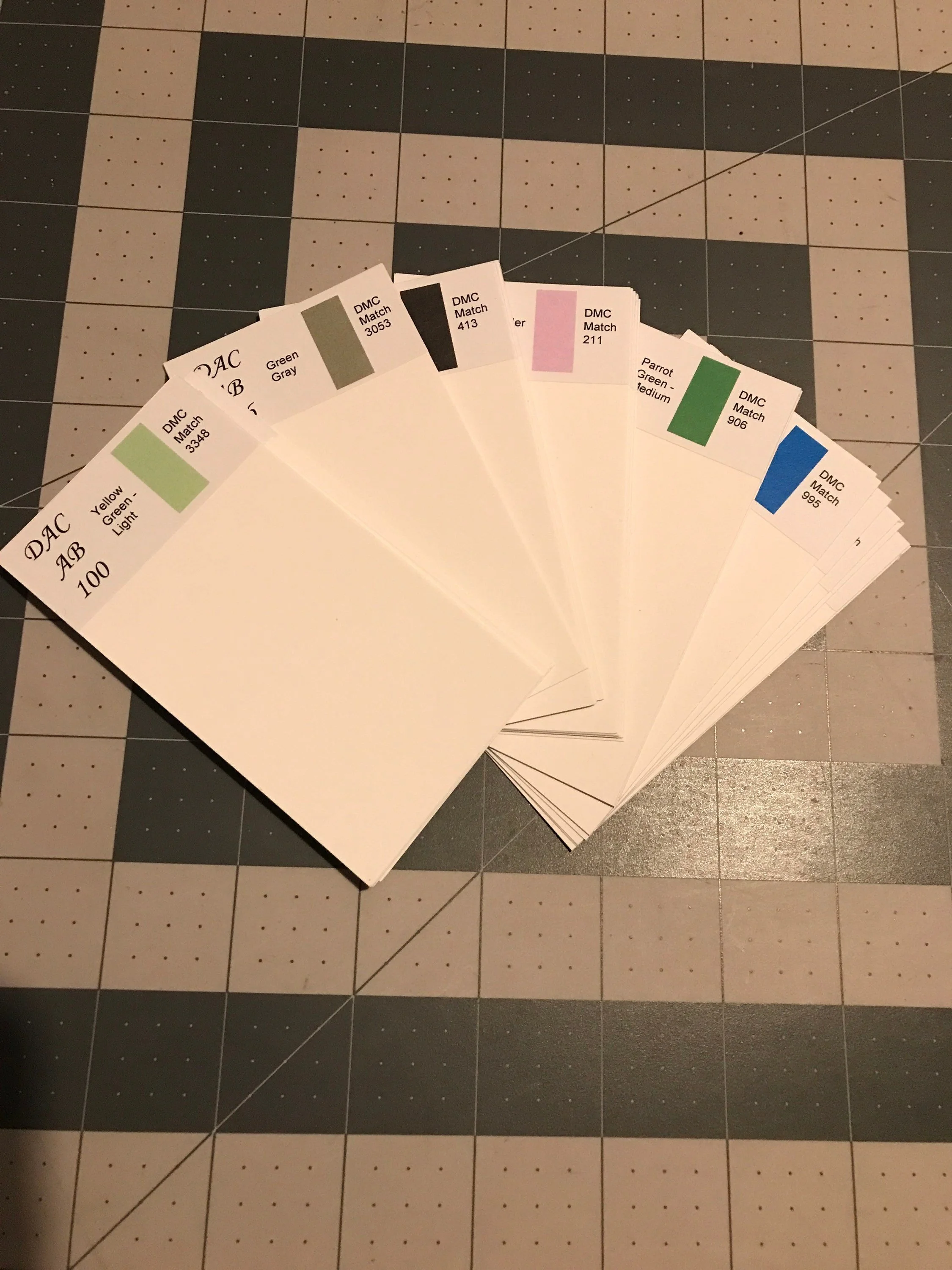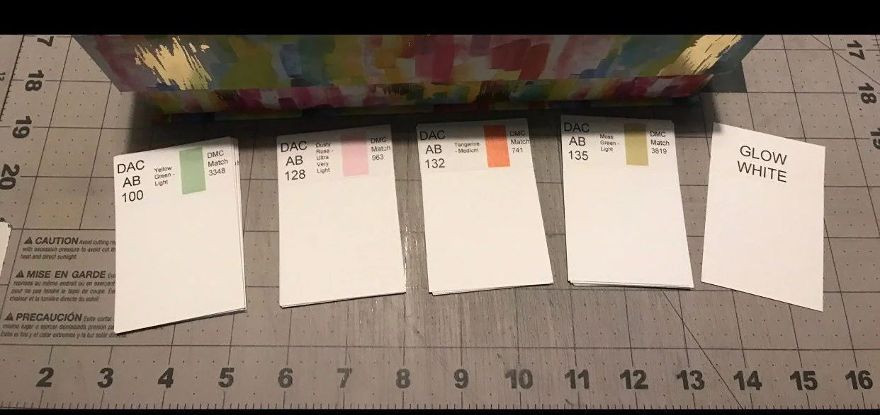 DAC AB DMC dividers with color description, color swatch, and dmc conversion. This makes finding the DMC number you're looking for easier.