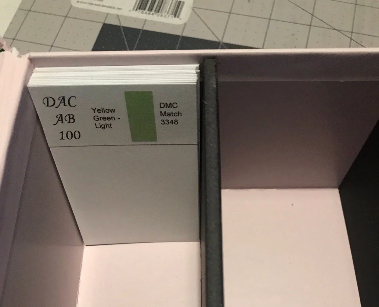DAC AB dividers. Diamond painting drill storage/organization dividers with a color swatch and color description.