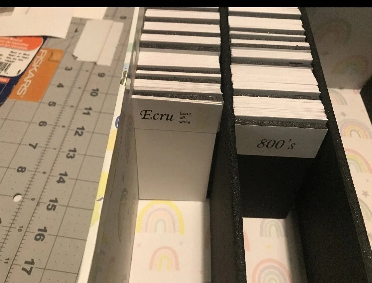 Divider size: 2.25x4.25 (please note sizes may be off a little tiny bit as these are hand cut) these are made to fit into a basic size craft box.