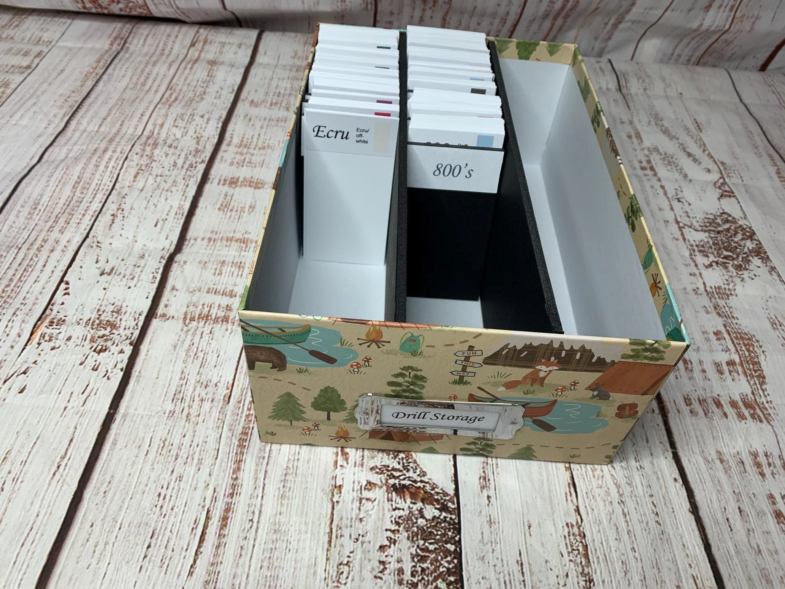 Diamond painting storage/organization box with colored numbered DMC dividers.