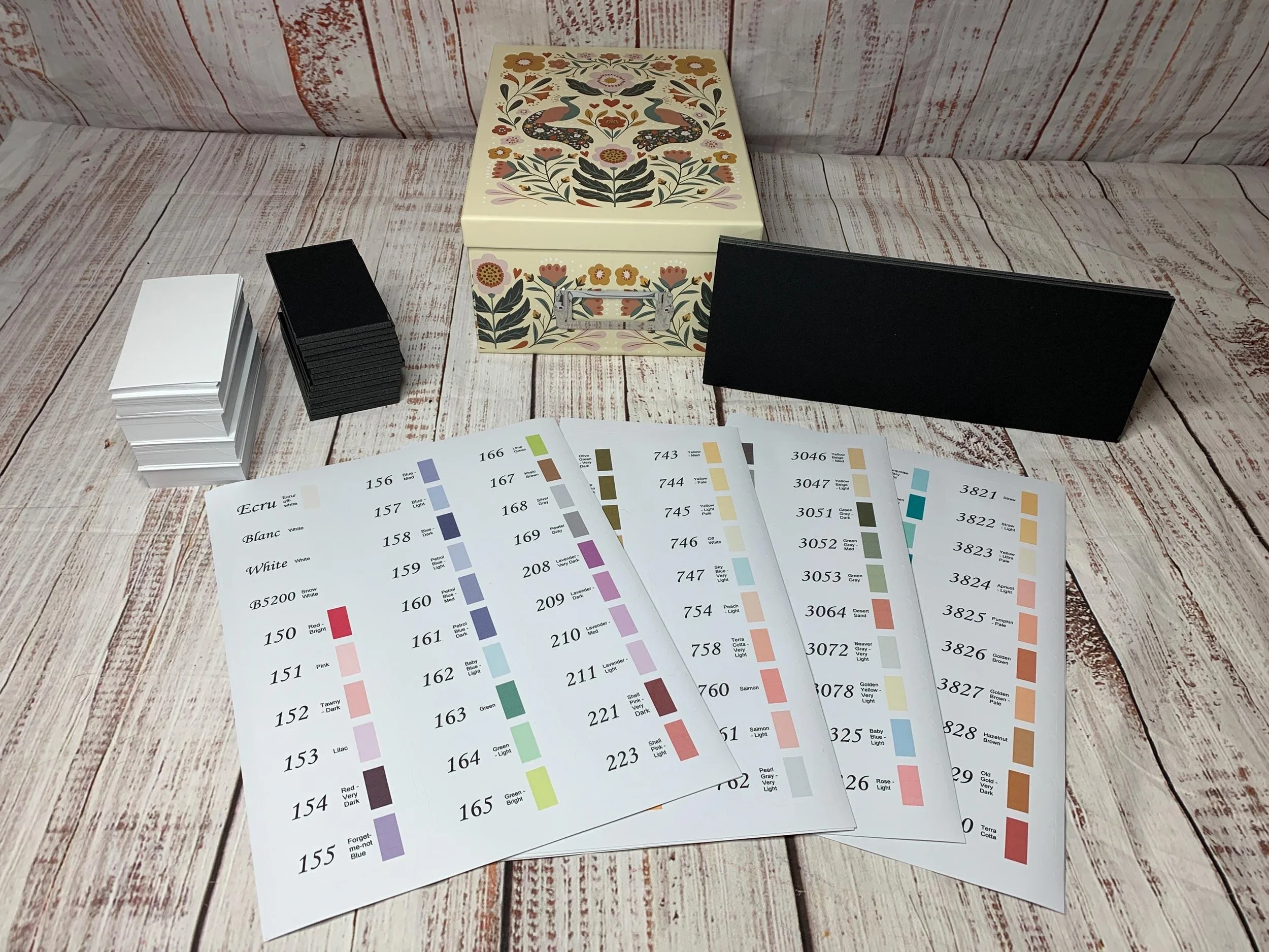 Kit contains: -Empty storage box. -Dmc labels (456 labels, 14 lot divider labels and 5 other labels used for box labeling). -456 blank dividers. -2 main row dividers. -14 lot dividers.
