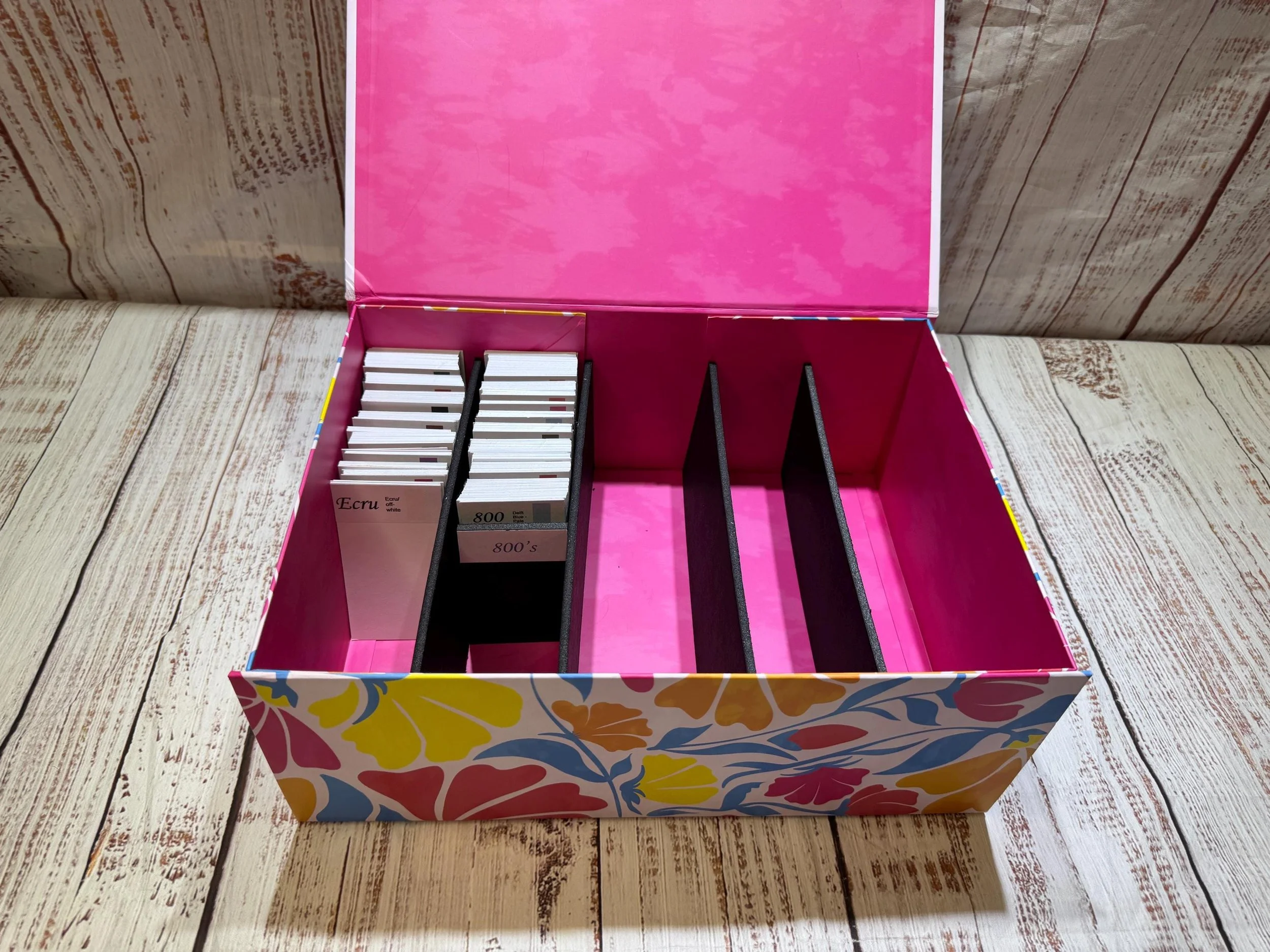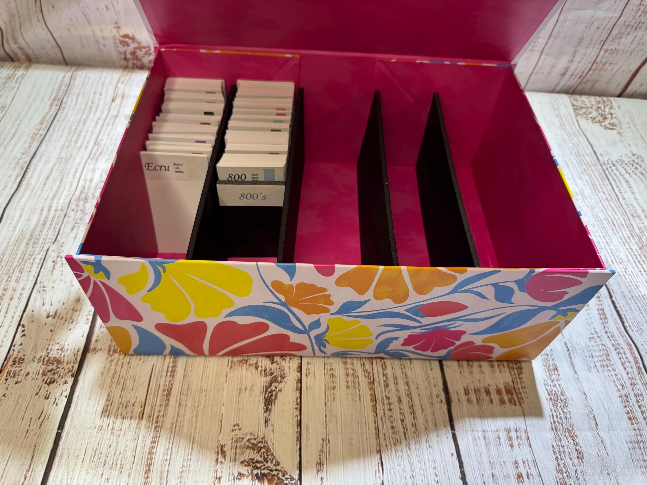 Diamond painting storage/organization box with colored numbered DMC dividers.