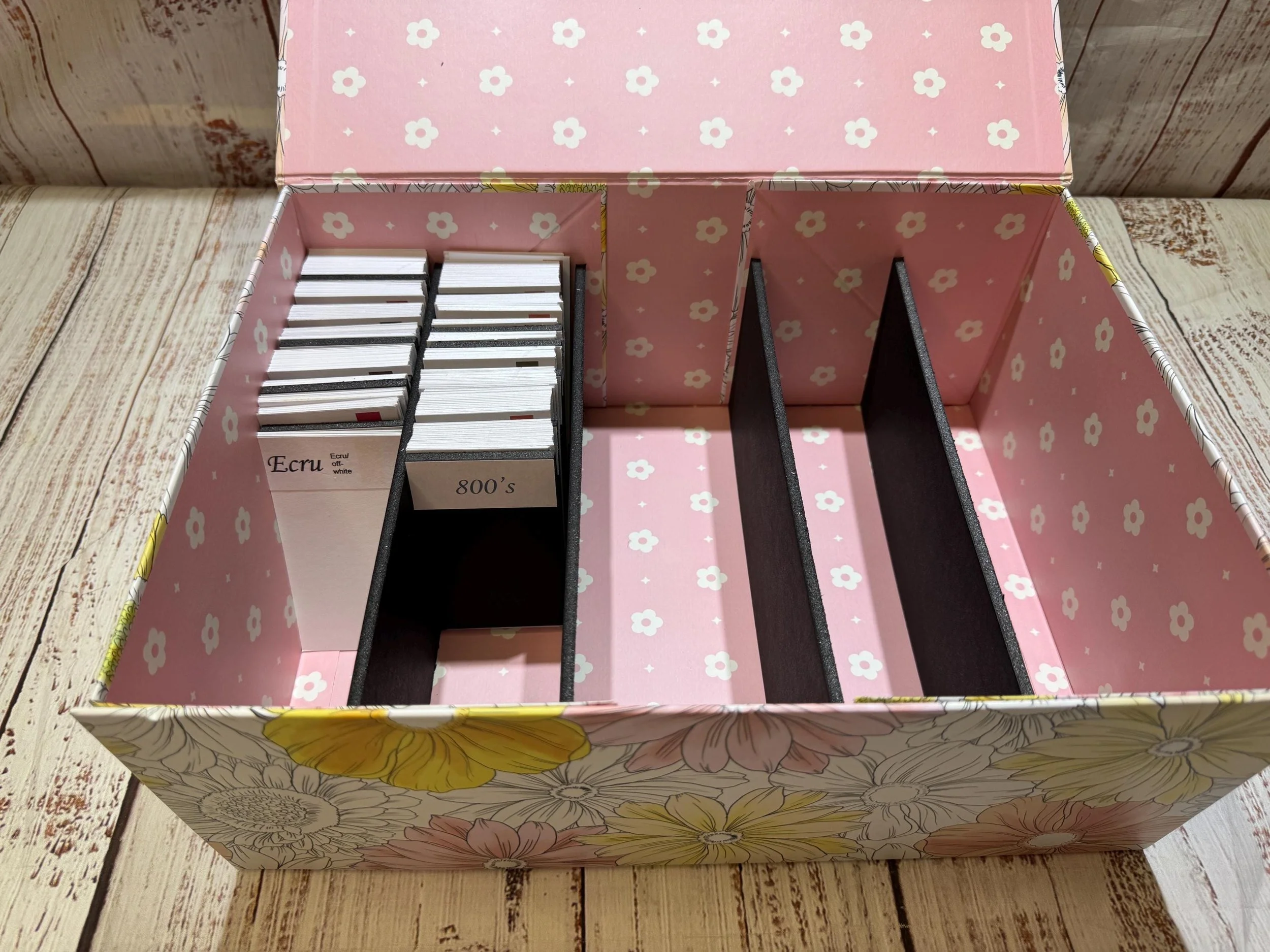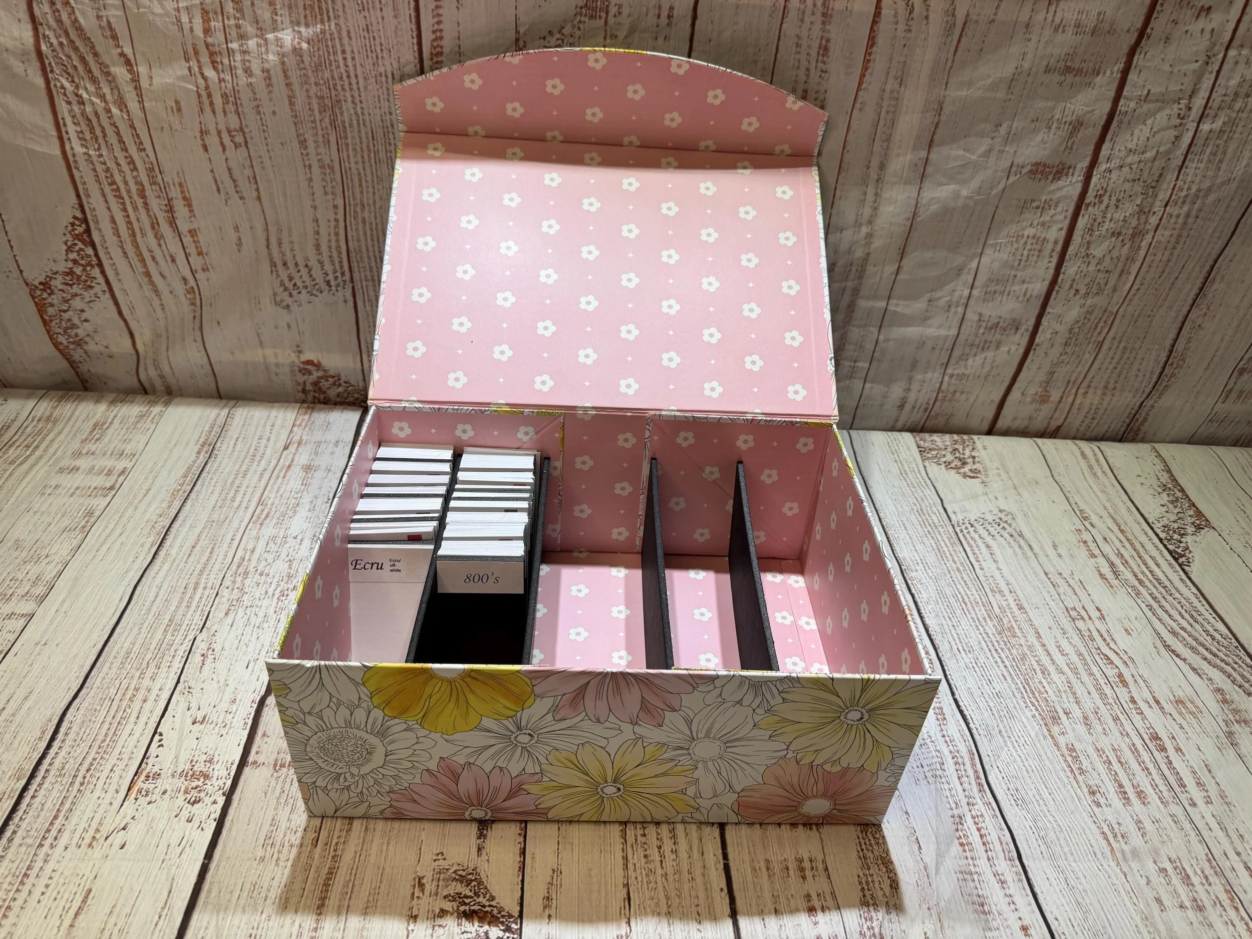 Divider size: 2.25x4.25 (please note sizes may be off a little tiny bit as these are hand cut) these are made to fit into a basic size craft box.