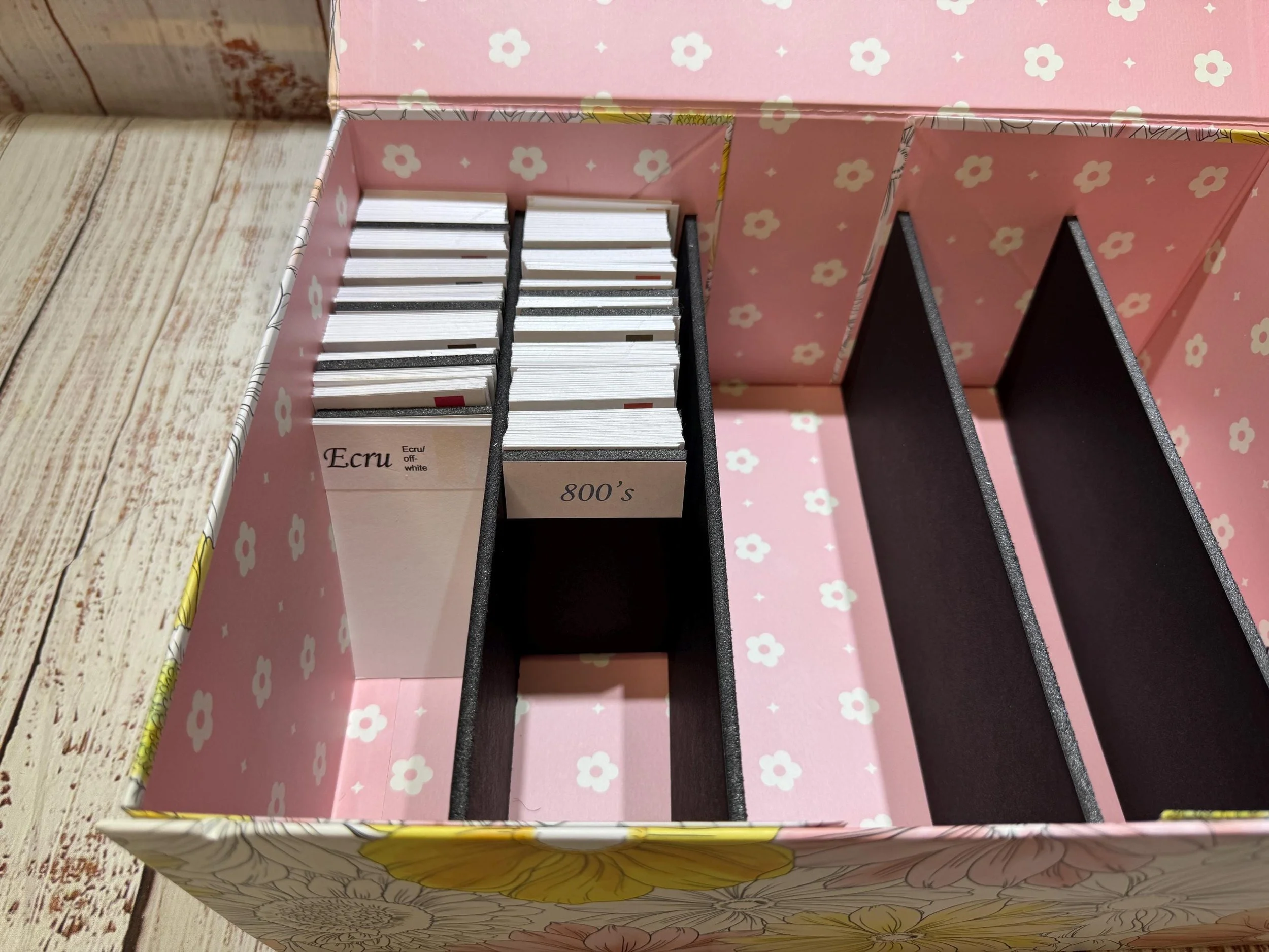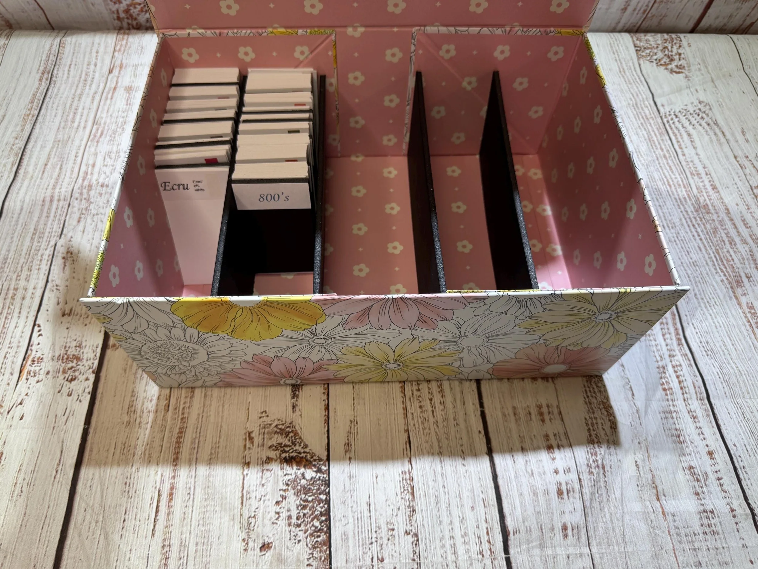 Diamond painting storage/organization box with colored numbered DMC dividers.
