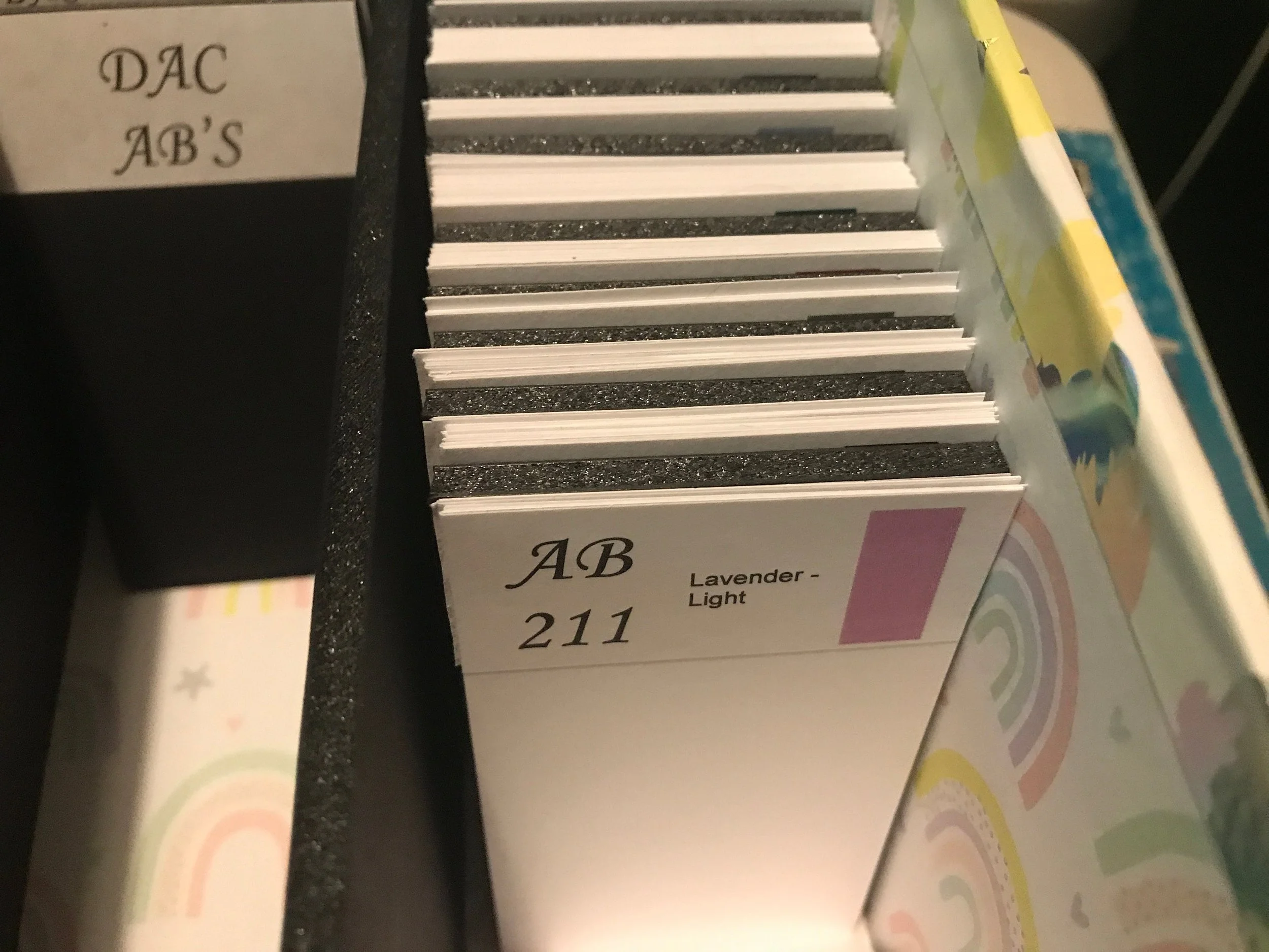 DMC dividers with color description and color swatch. For a list of what ab dmc numbers the box contains please see the pics in the ab labels listing. The list of DMC numbers has been compiled by scouting several large ad drill sellers to try to come up with the most complete list. This does not guarantee it is a full set as there are no complete lists used by any manufacturer.