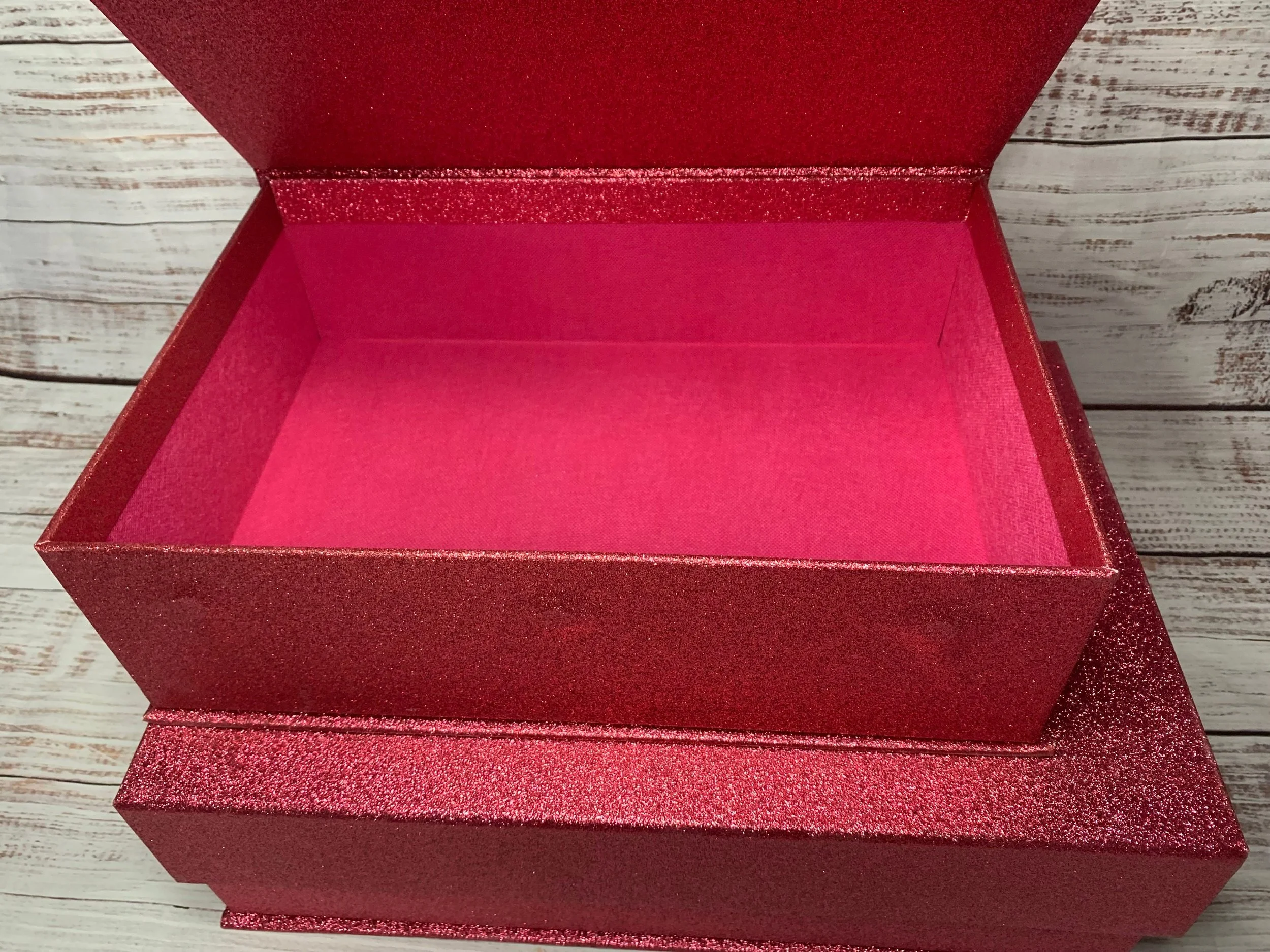 Magnetic Flip top closure. (Interior pics are not of the inside of this box. The colors inside will be different)